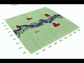 CHILD model simulation of a meandering river in its floodplain. The meander migrates through the floodplain, depositing channel sands in its bed.
